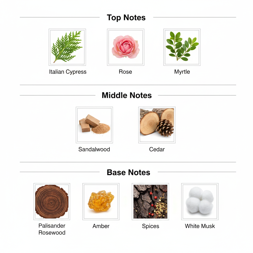 The base settles into warm amber and sandalwood, creating a luxurious trail that lingers throughout the day. Ideal for connoisseurs who appreciate the complexity and heritage of fine oud fragrances. A timeless addition to any discerning collector's repertoire.